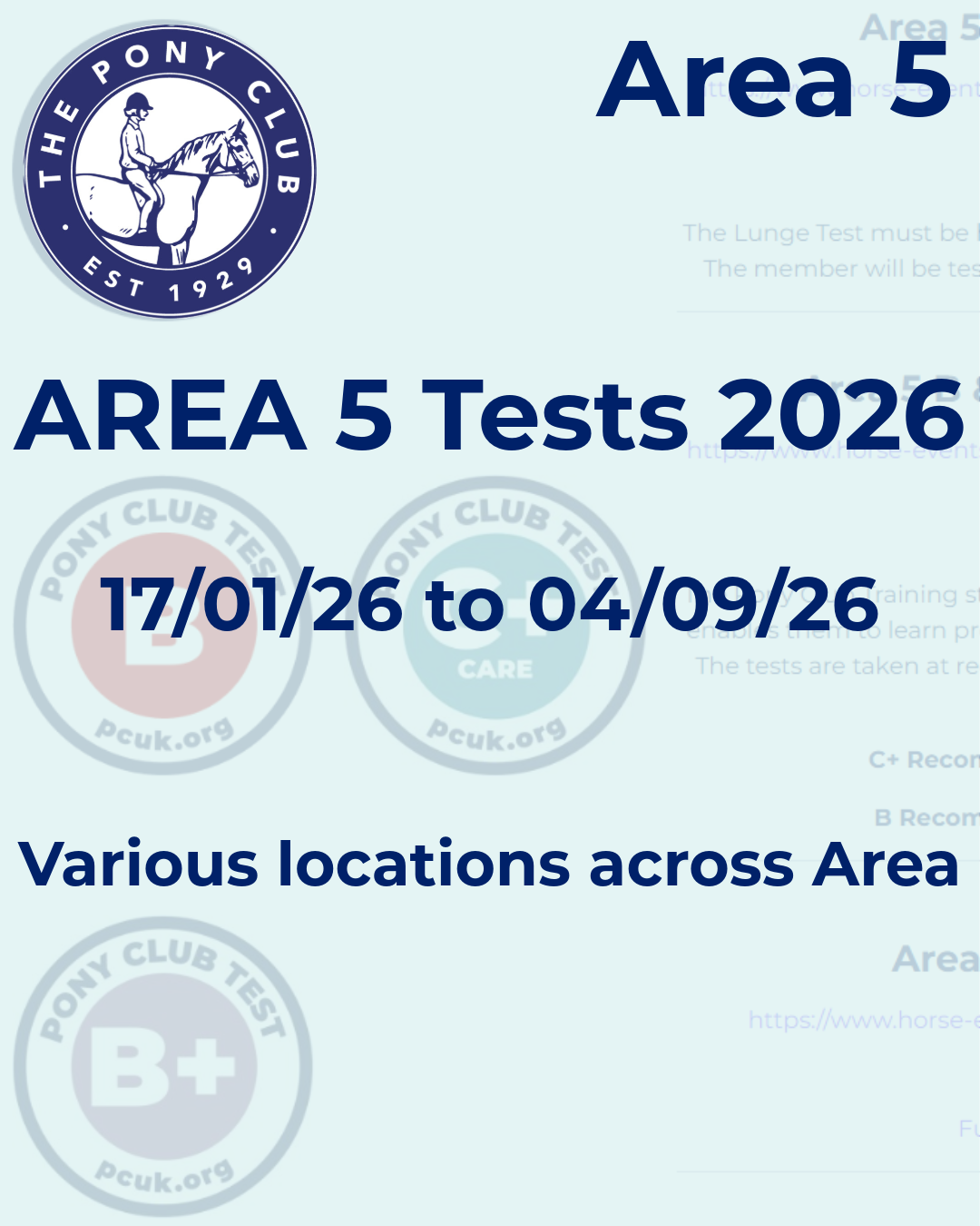 Trainings for the tests will appear in the Area 5 Calendar during the year and will be supported by Social Media promotion on X, FaceBook and Instagram.