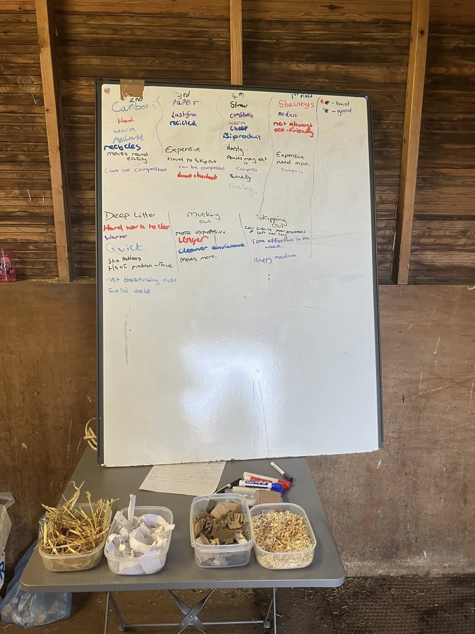 Discussed the health, environmental and economical pros and cons of bedding, stabling and poo picking.