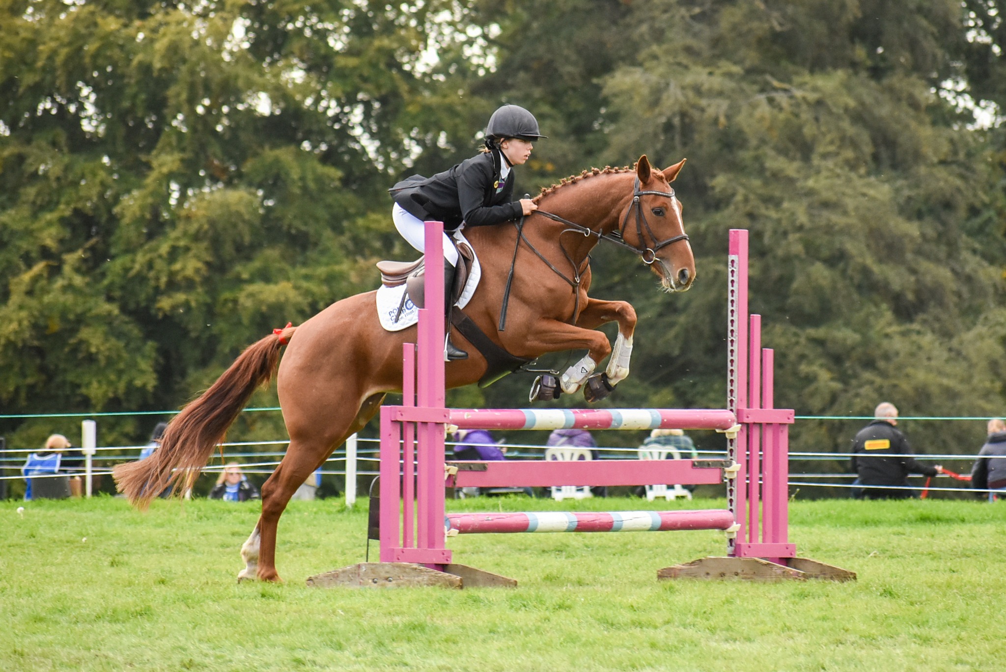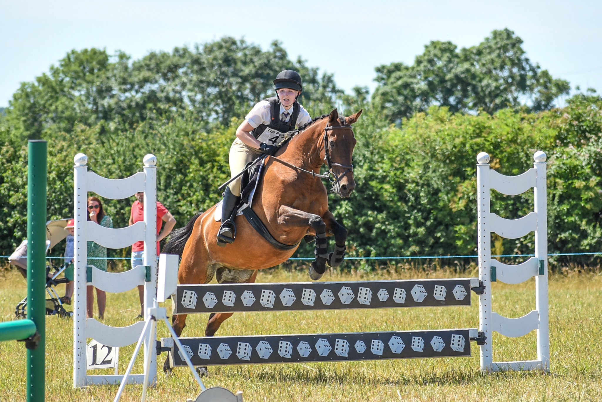 Intended to demonstrate the horse and rider’s courage, athletic ability, precision, speed and partnership, your aim is to jump a clear round. If you manage to jump clear, you will go through to the second stage which is called a “jump-off”. A jump-off is a shortened course which is timed. The winner is the horse and rider with the least faults and the fastest time in the jump-off.