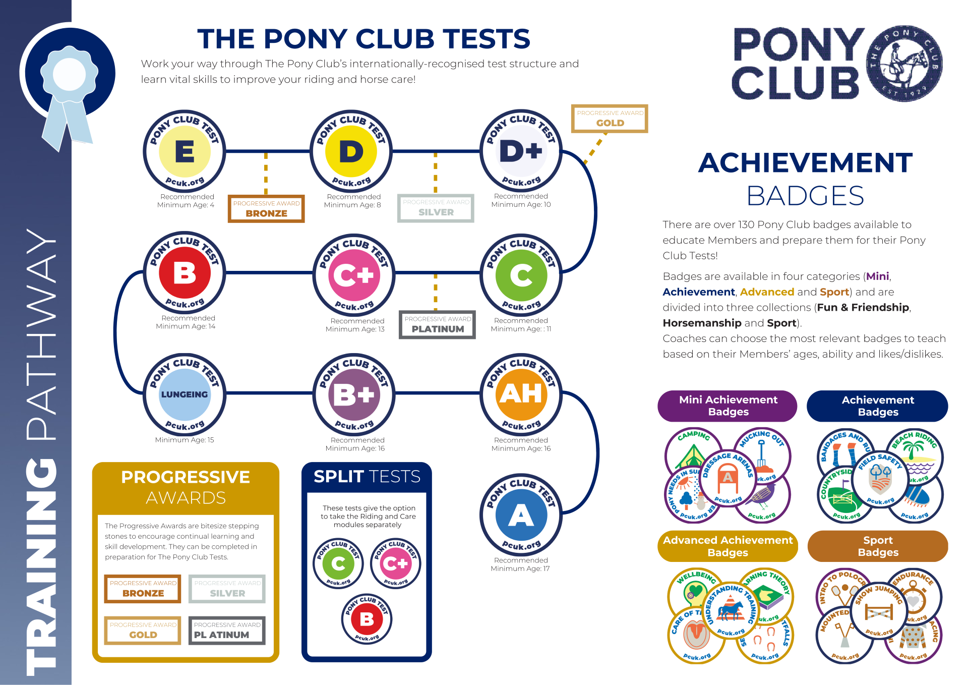 Please find The Pony Club Training Pathway below, you will be kept up to date what tests are running but if you would like to progress into a test please contact your DC