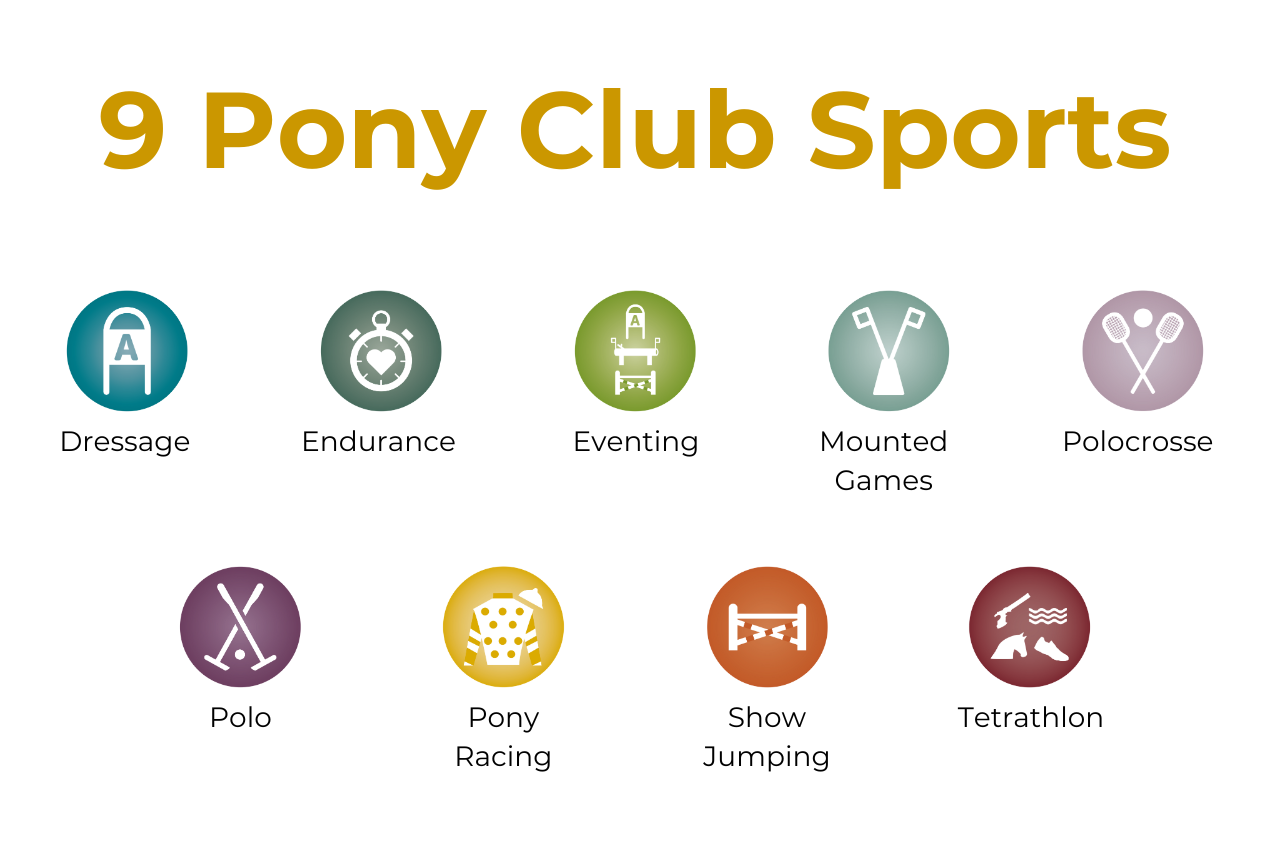 The Pony Club has 9 different Equestrian Sports to choose from as well as Horsemanship.