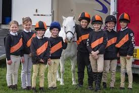 Correctly dressed riders for a pony club games competition – Oxenholme colours, Black & Orange.