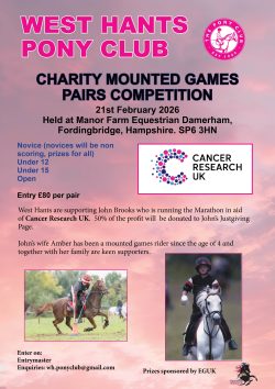 Please support our Charity Mounted Games competition on 21st February. Superb prizes sponsored by Equestrian Games UK. Entries via Entry Master