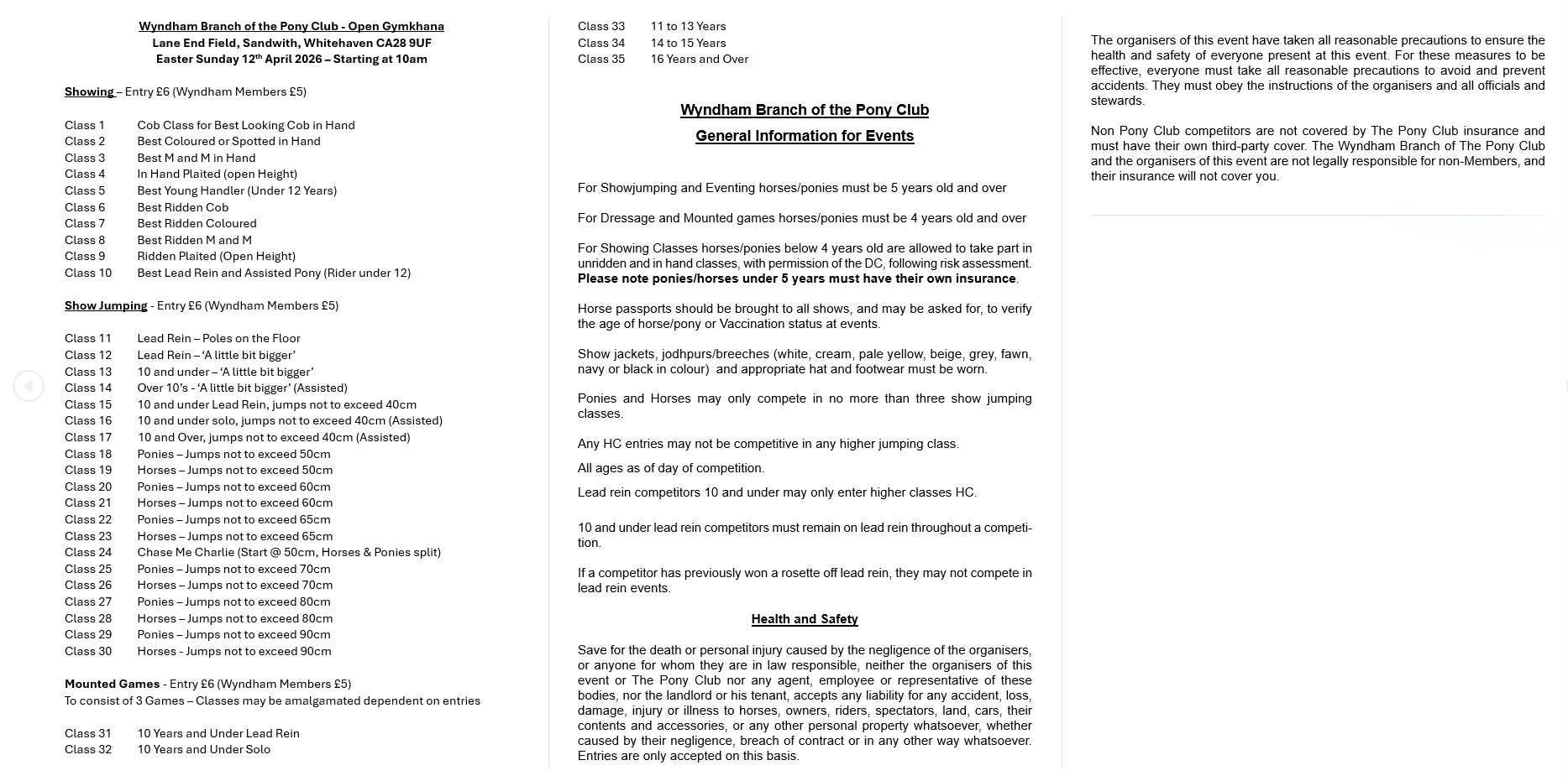 Sunday 12th April Easter Gymkhana @ Pony Club Field @ 10am